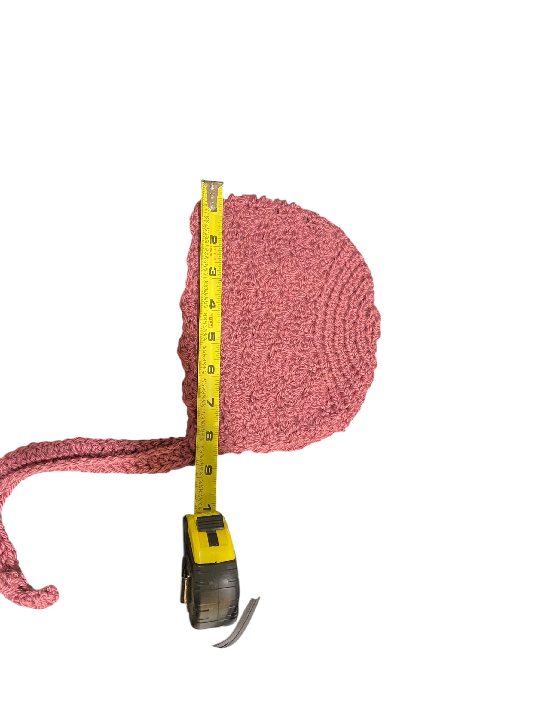 A sweet hand-crocheted toddler bonnet crafted with soft, cozy yarn and beautiful heirloom-style stitches. Lightweight, comfy, and perfect for everyday wear, photos, and special outings. A timeless handcrafted accessory for your Dottie Dimples little one. PLEASE NOTE: See measurements in the photos.